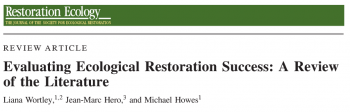 Assessing the success of ecological restoration projects is critical to justify the use of restoration in natural resource management and to improve best practice. Although there are extensive discussions surrounding the characteristics that define and measure successful restoration, monitoring or
