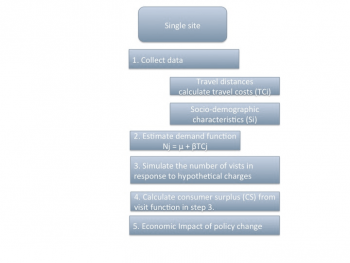 The travel cost methods (TCM) is based on the observation that recreational services can only be realised through physical access to nature. This implies that individuals seeking to enjoy the service will need to spend resources (time and money) to travel to the site. The travel activity is a