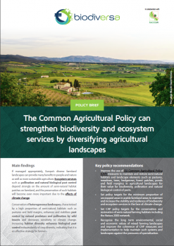“The Common Agricultural Policy can strengthen biodiversity and ecosystem services by diversifying agricultural landscapes” is based on the combined results of the FARMLAND, APPEAL, CONNECT, EC21C and ECODEAL projects, funded by BiodivERsA and FACCE-JPI. This 4-page brief presents key