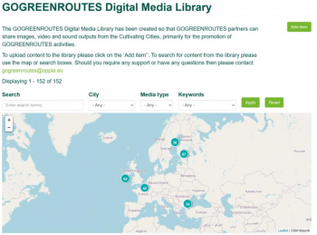 Oppla created a digital media library which holds images and videos reflecting each of the Cultivating Cities and the outputs and interventions of the GoGreenRoutes project. The database is available to the Cultivating Cities to use for promotion of GoGreenRoutes activities, particularly digital