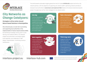 City networks play a crucial role in promoting and supporting local authorities in the implementation of nature-based solutions (NbS). By facilitating knowledge-sharing, peer-to-peer learning, and collective efforts, city networks enable local authorities to exchange insights, build capacities, and