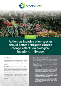 The policy brief entitled “Action on invasive alien species should better anticipate climate change effects on biological invasions in Europe” is based on the combined results of the BiodivERsA-funded WhoIsNext, INVAXEN and Resipath projects. This 4-page brief presents key recommendations on
