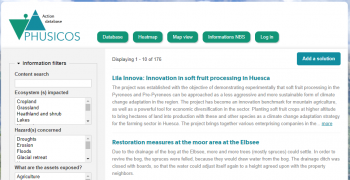 The PHUSICOS Action Database is a product innovation which establishes a comprehensive state-of-research evidence-base and information management platform. Implemented NBSs related to extreme hydro-meteorological events in rural and mountainous landscapes are accessible though this open-source