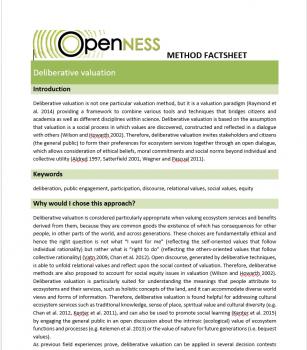 Deliberative valuation is not one particular valuation method, but it is a valuation paradigm (Raymond et al. 2014) providing a framework to combine various tools and techniques that bridges citizens and academia as well as different disciplines within science. Deliberative valuation invites